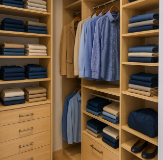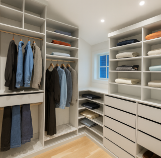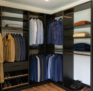 Explore our walk-in closet systems, wardrobes, mudroom organizers, reach-in closets, pantry shelving, and garage storage solutions — all crafted for style, durability, and function.