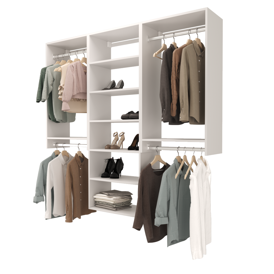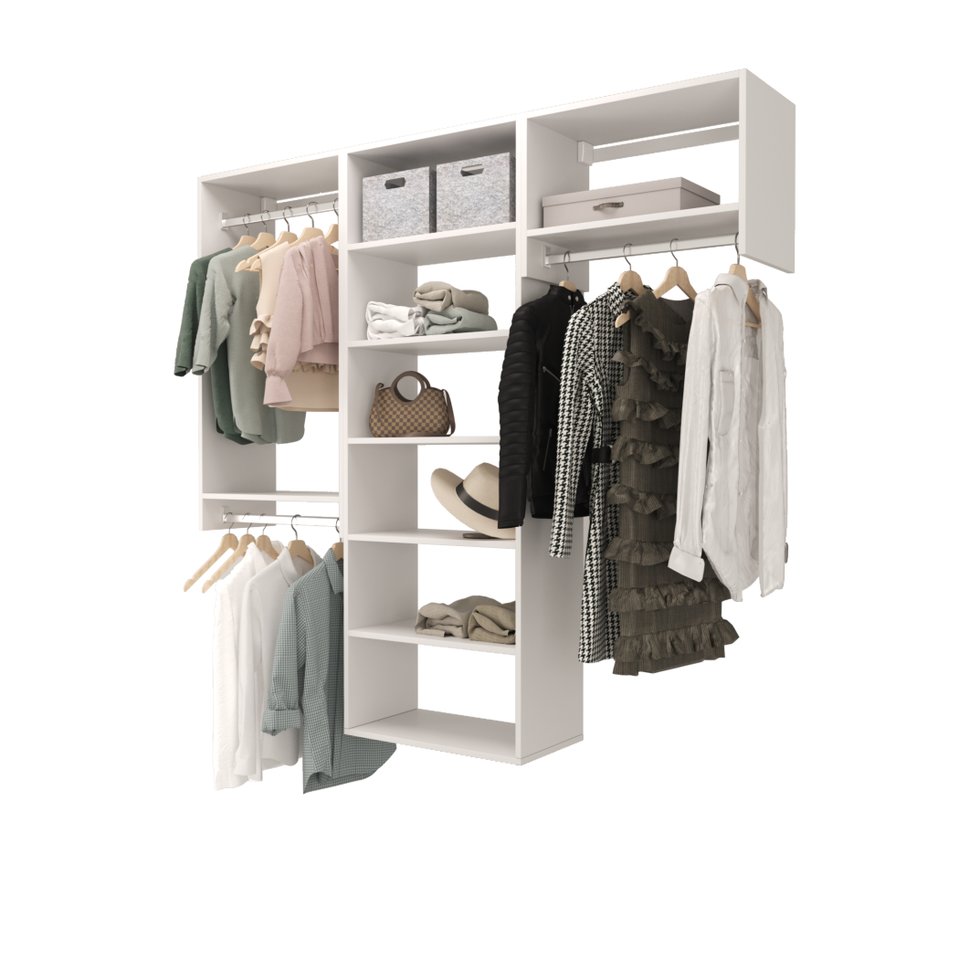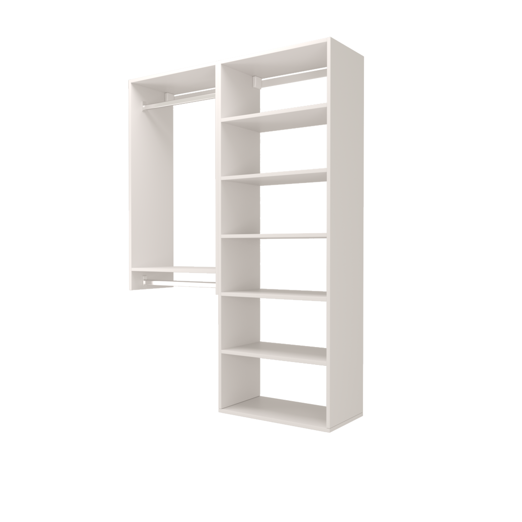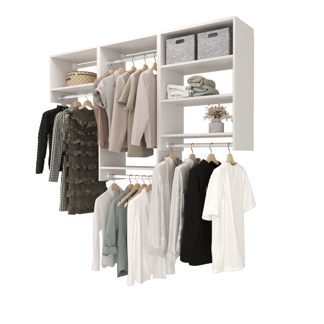 Choose from ready-made modular configurations or design your own using our 3D Configurator Tool. Each system is manufactured in our factory using premium melamine panels and high-quality hardware, then flat-packed and shipped with easy DIY installation instructions.