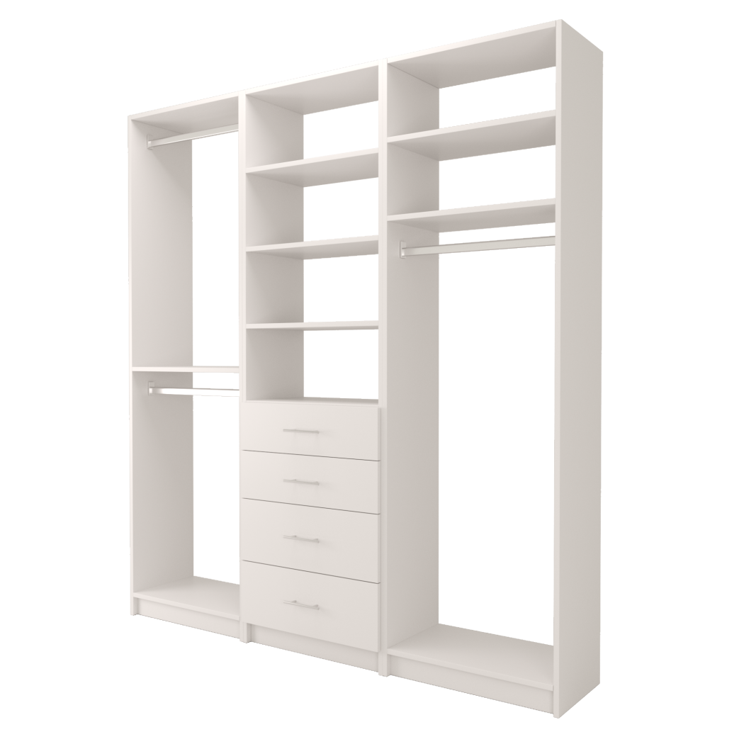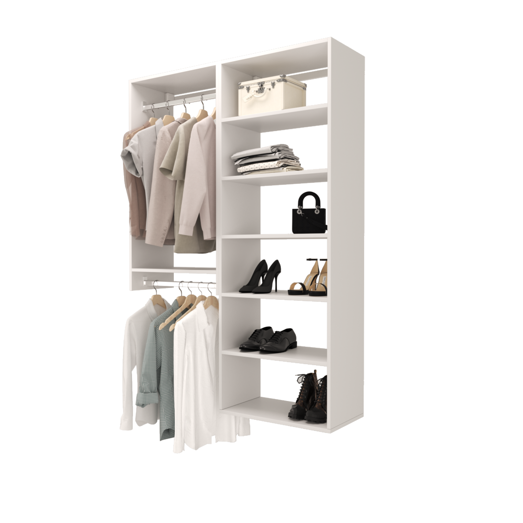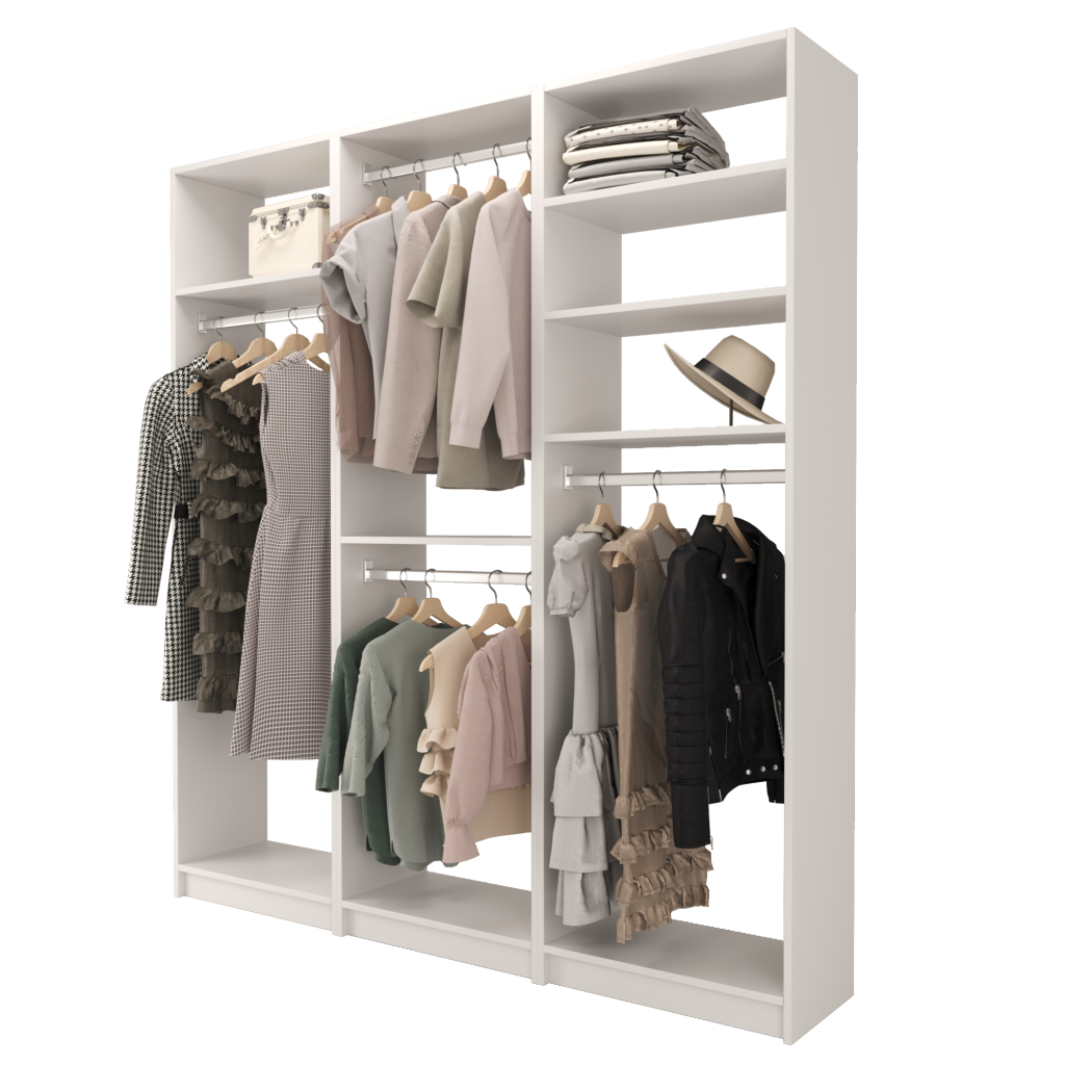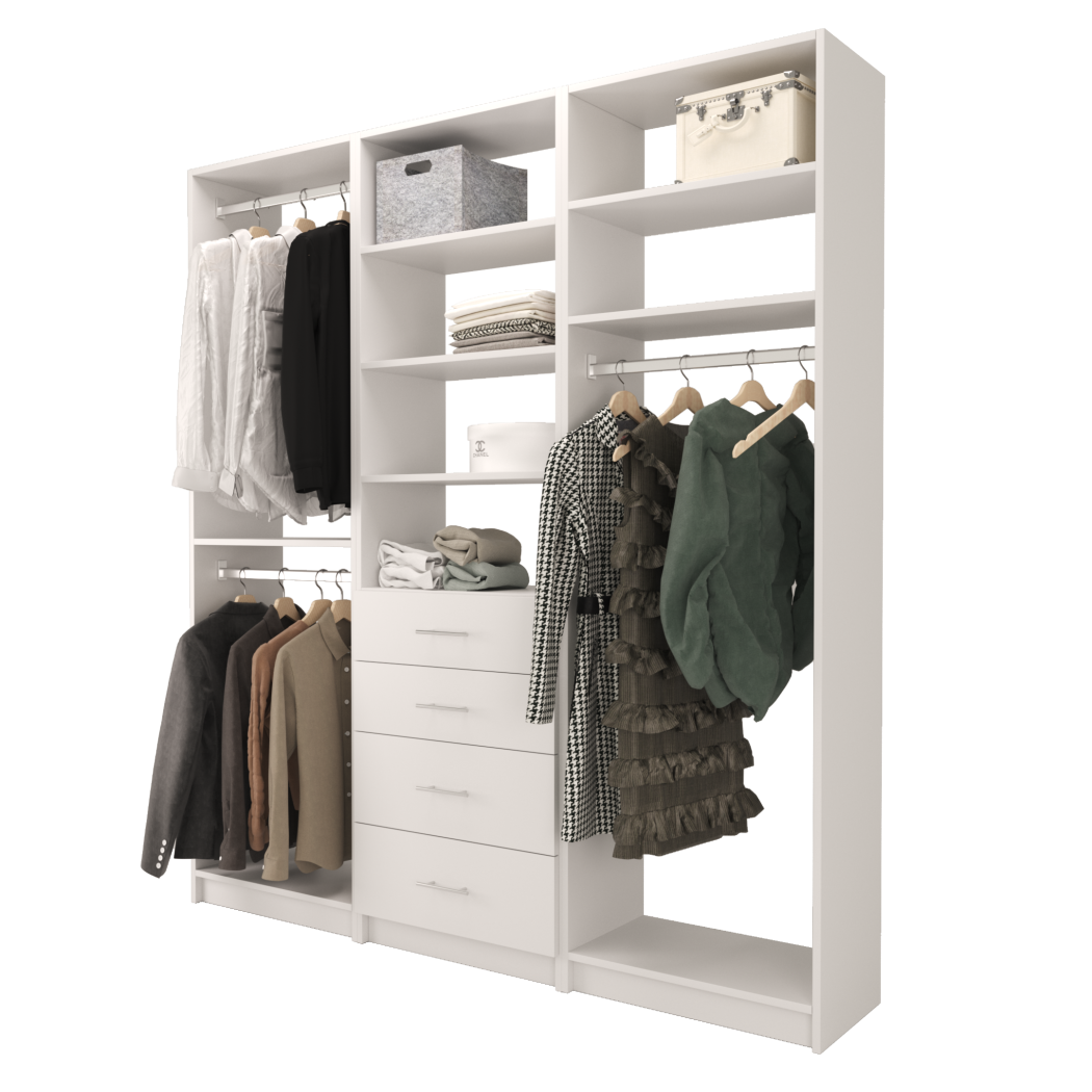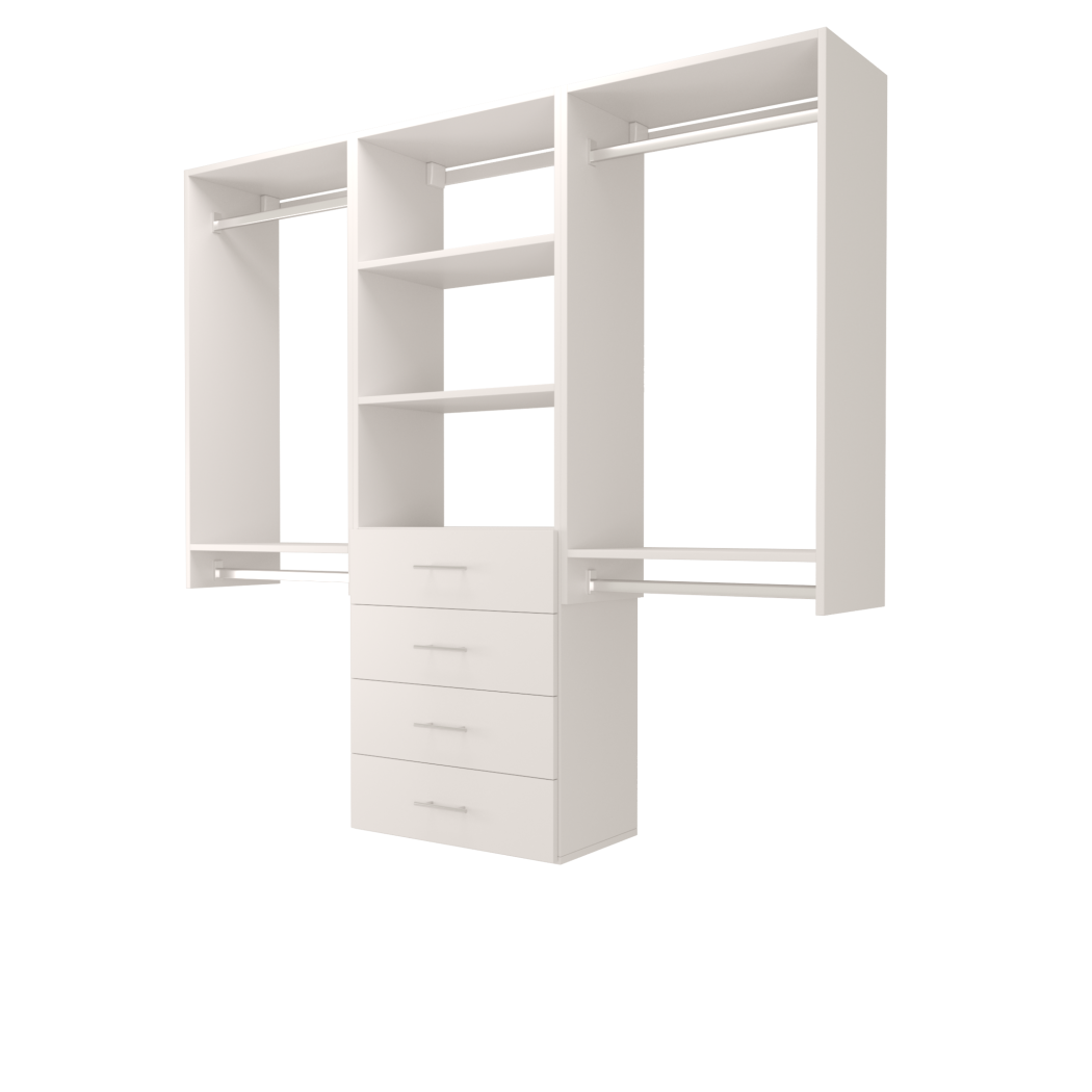 Choose from ready-made modular configurations or design your own using our 3D Configurator Tool. Each system is manufactured in our factory using premium melamine panels and high-quality hardware, then flat-packed and shipped with easy DIY installation instructions.
