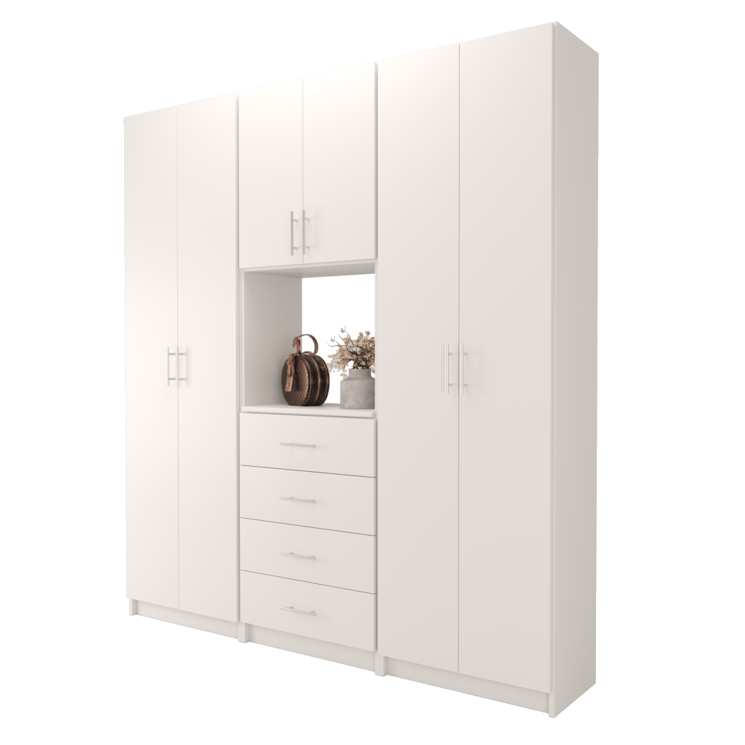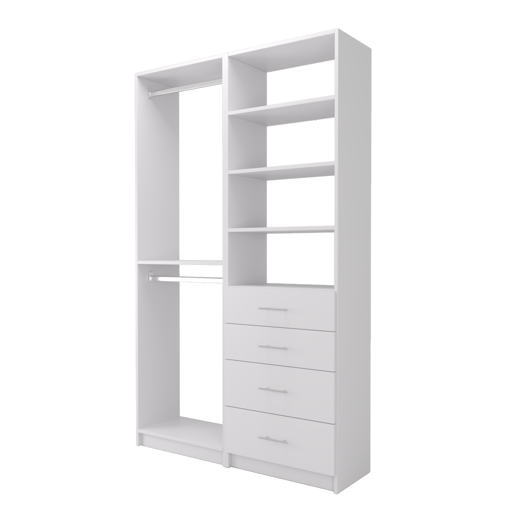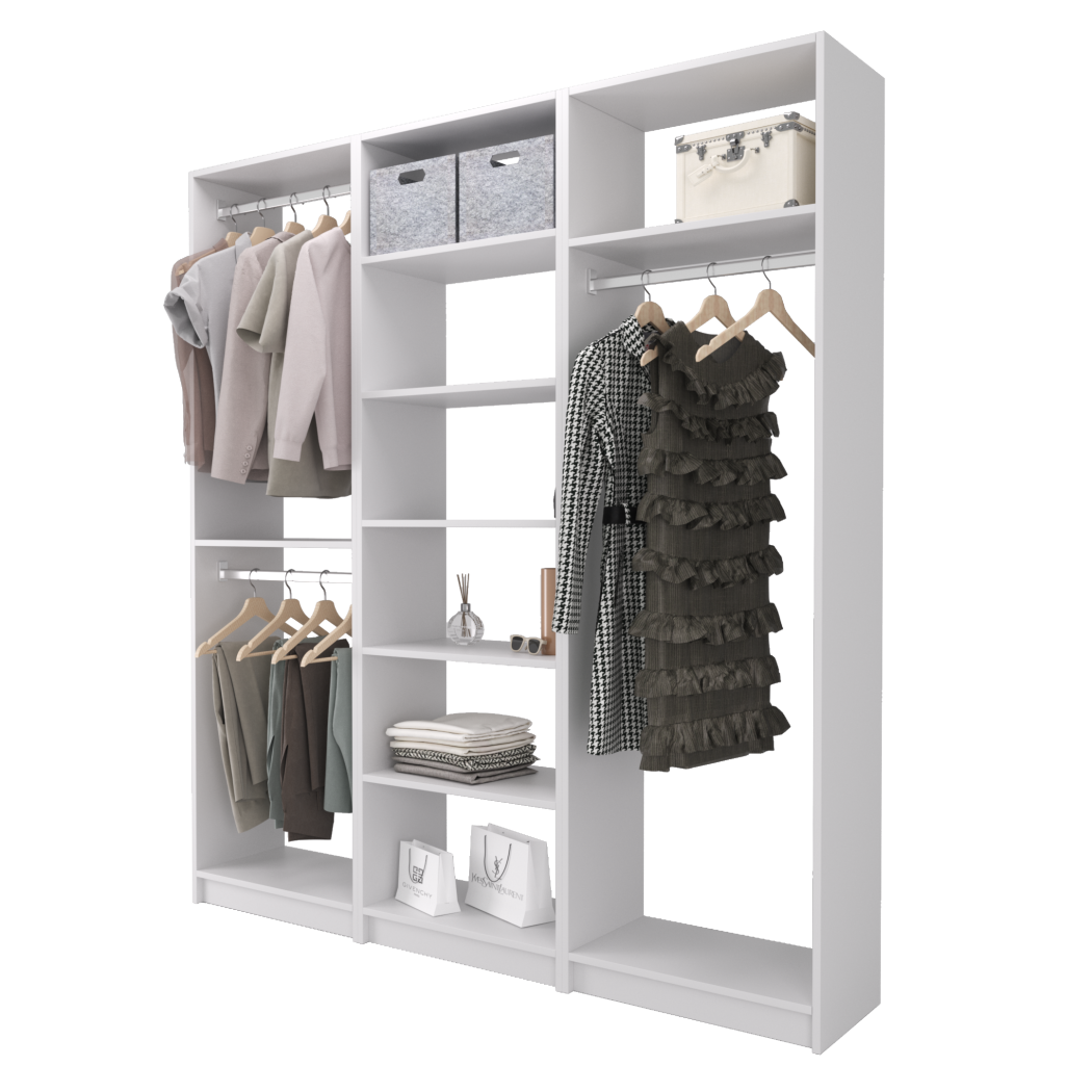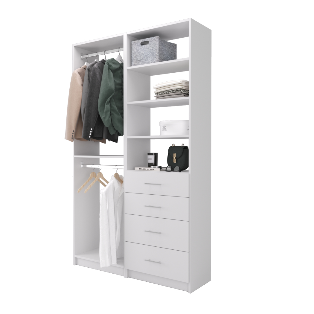 Choose from ready-made modular configurations or design your own using our 3D Configurator Tool. Each system is manufactured in our factory using premium melamine panels and high-quality hardware, then flat-packed and shipped with easy DIY installation instructions.