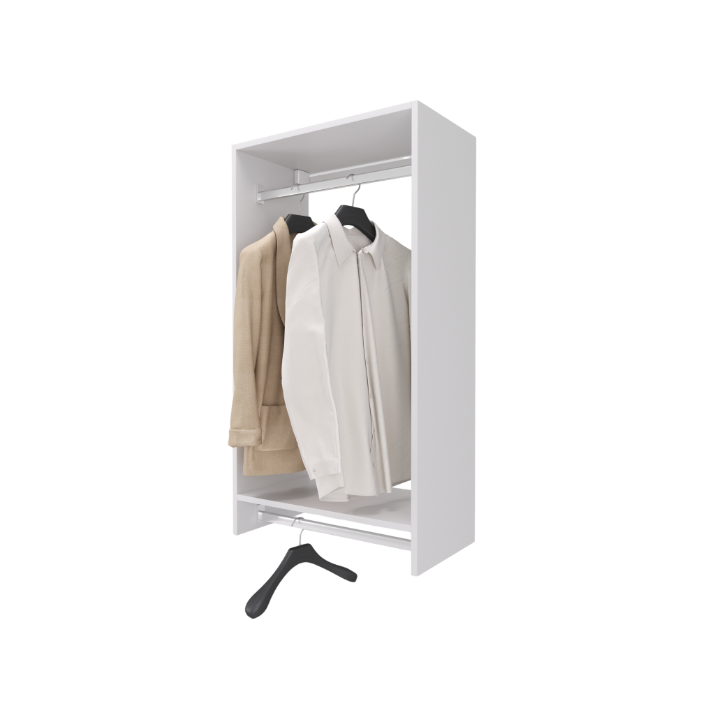 Say goodbye to closet clutter! This unit is designed to keep your wardrobe neat and organized. With two rods perfectly sized for shorter garments like shirts and skirts, you’ll have more space than ever before.