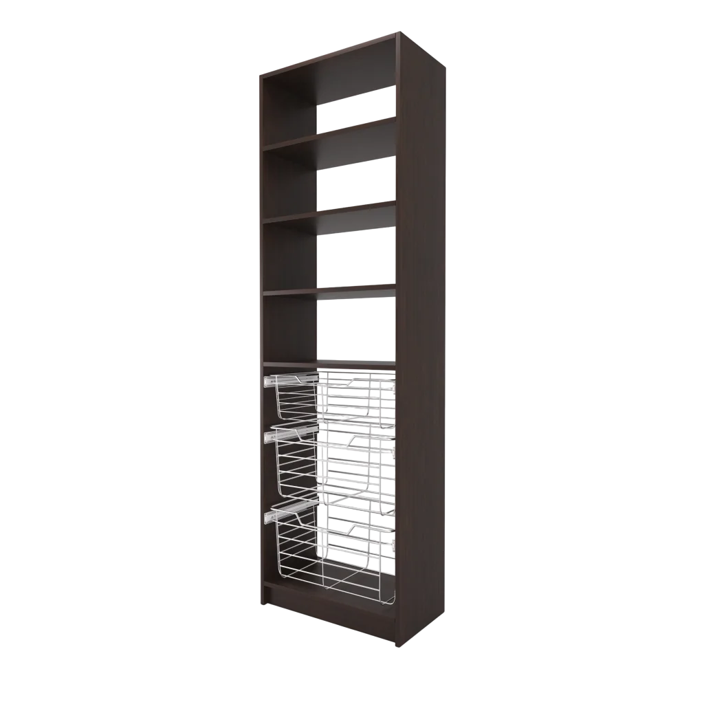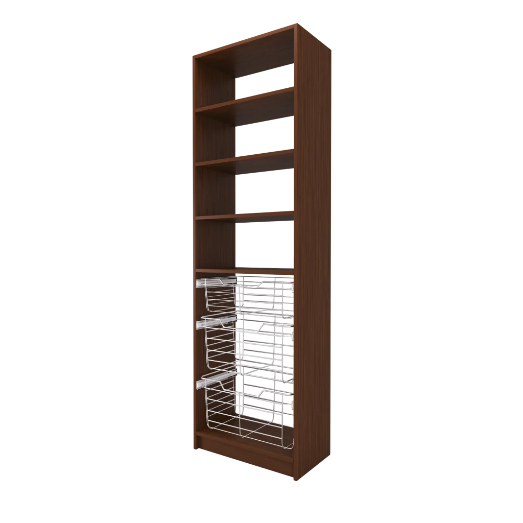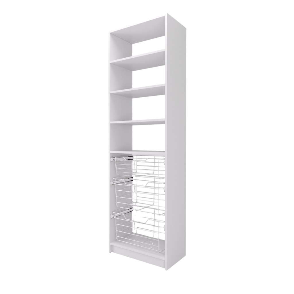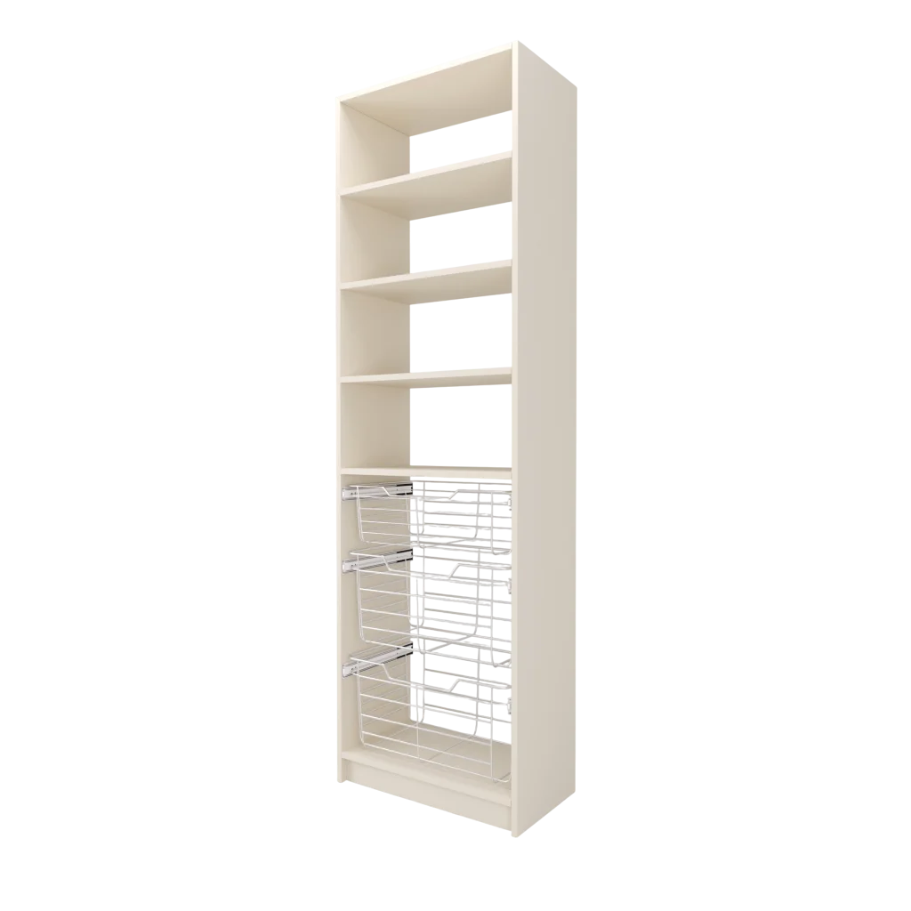 - Two 11″ high and one 6″ high wire closet basket with full extension slides