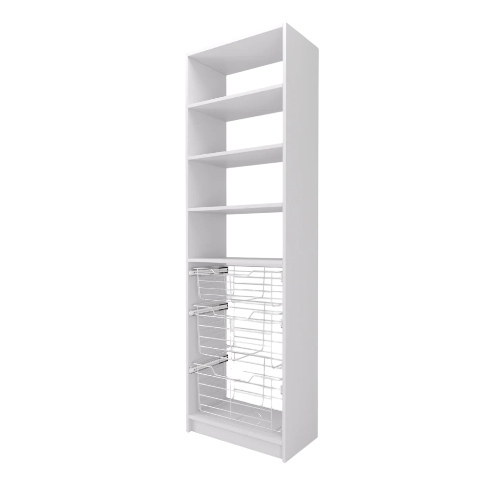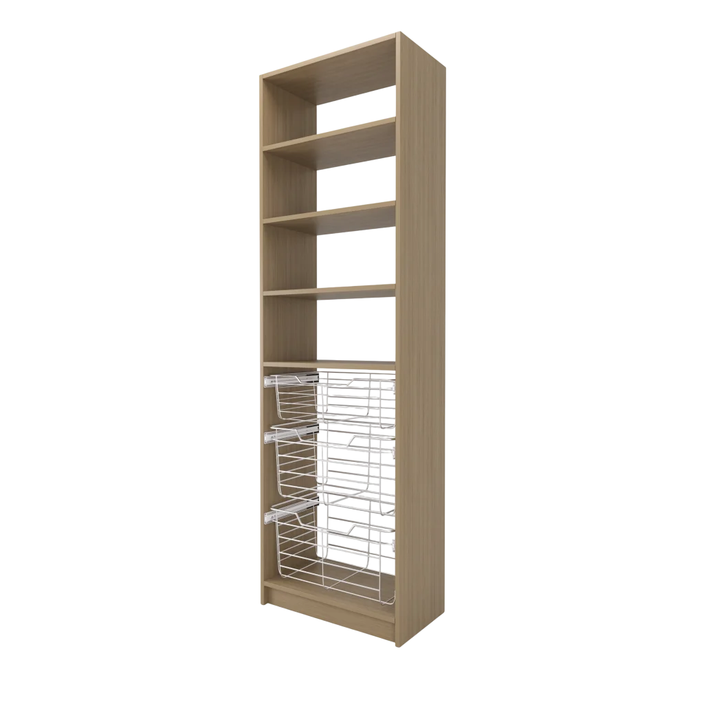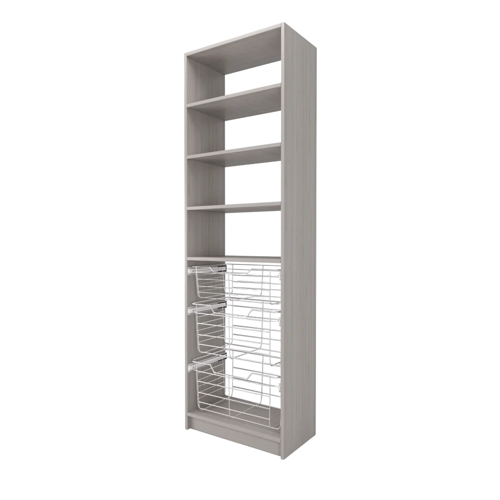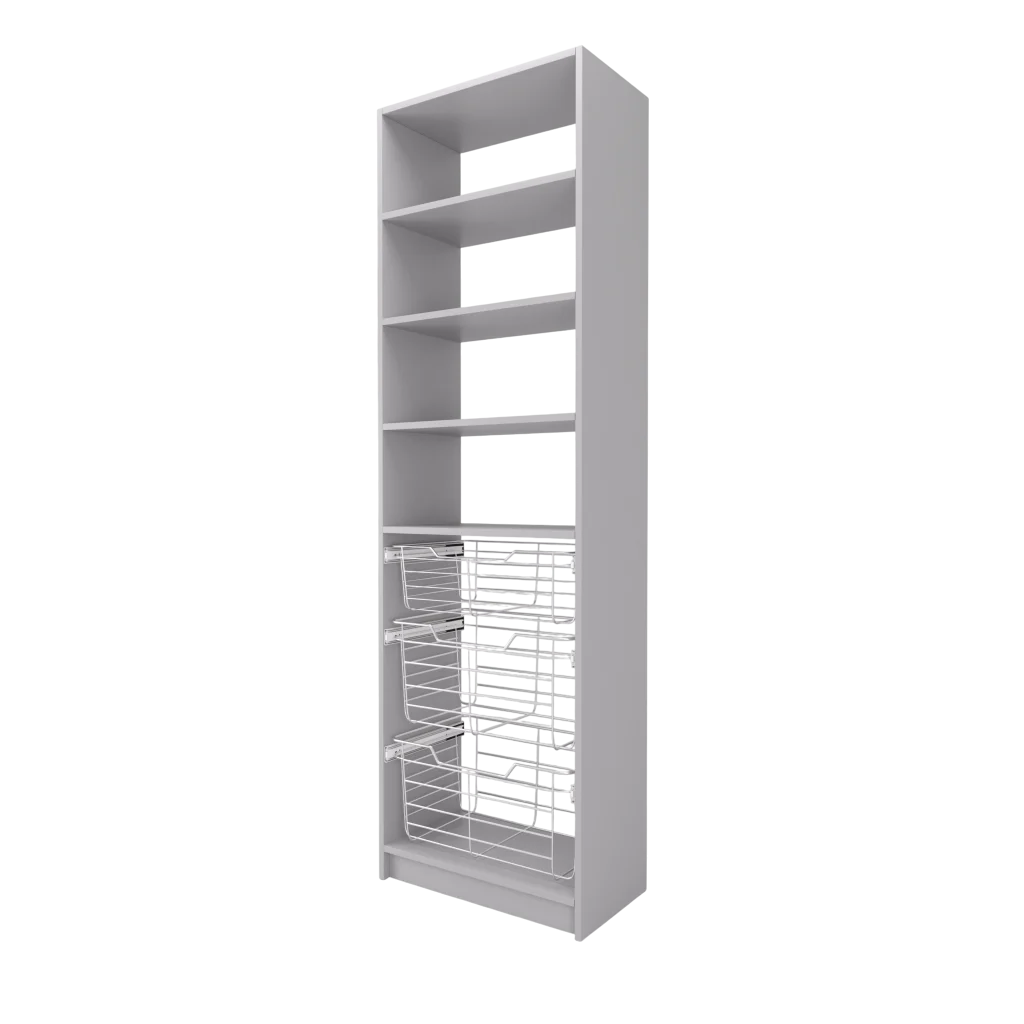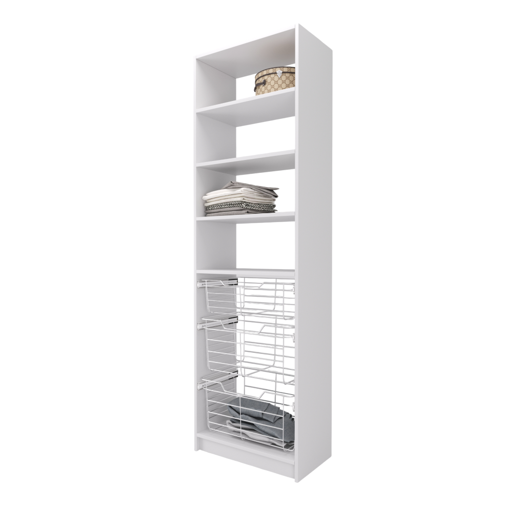 - Two 11″ high and one 6″ high wire closet basket with full extension slides