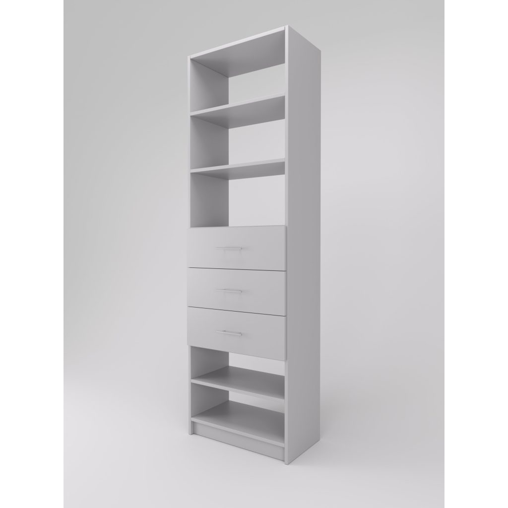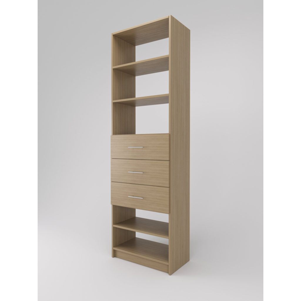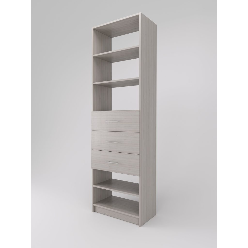 Maximize closet storage with this floor-based shelving unit featuring three drawers.