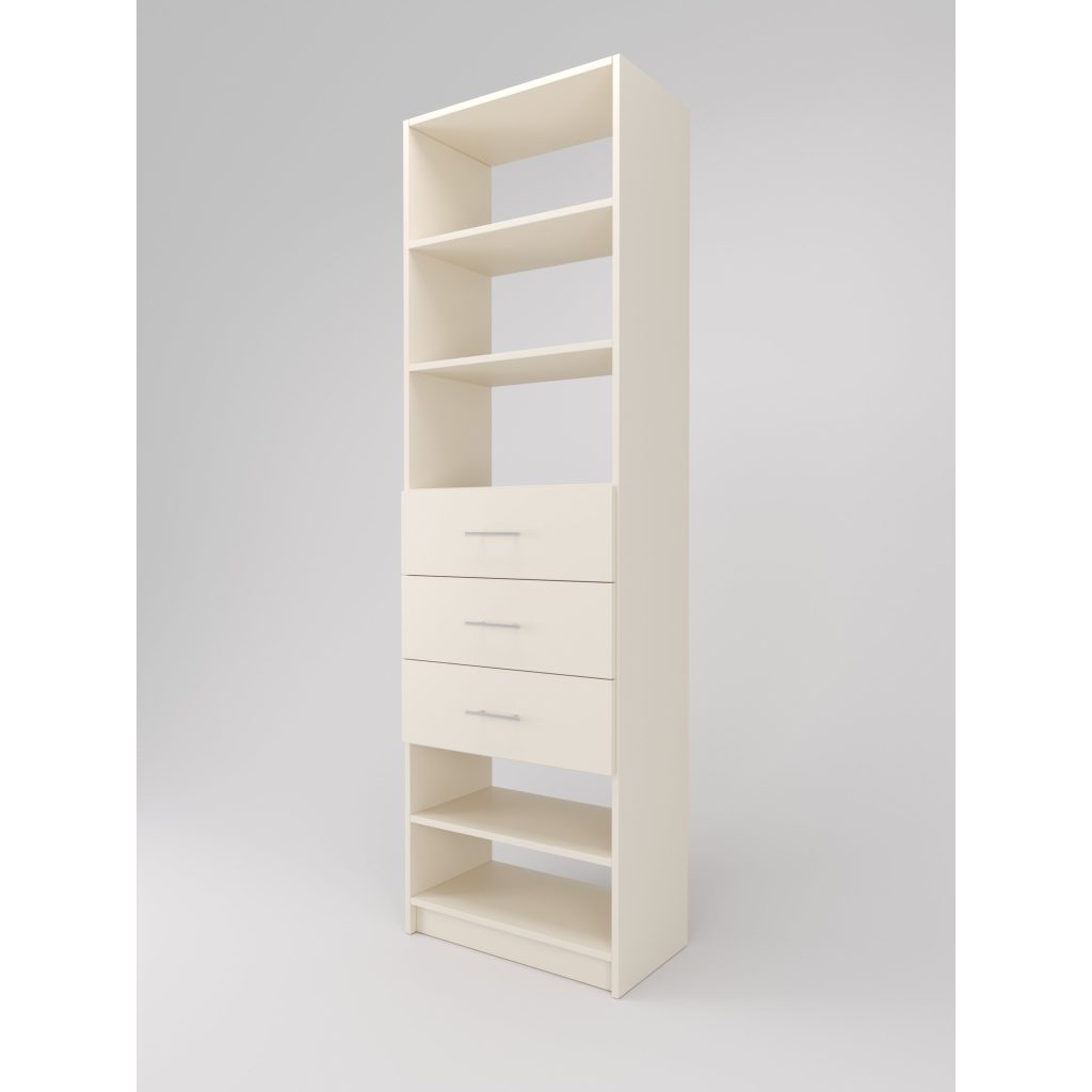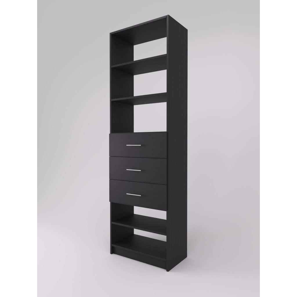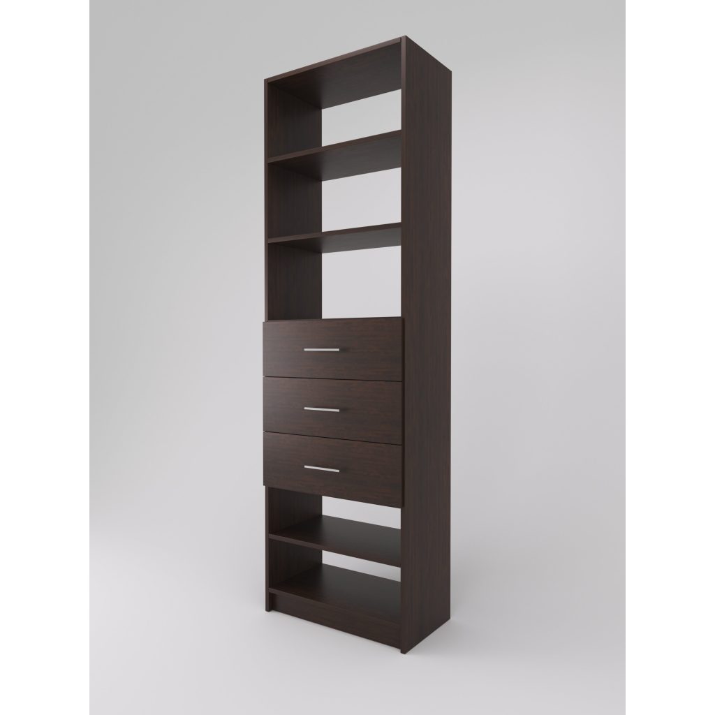 Maximize closet storage with this floor-based shelving unit featuring three drawers.