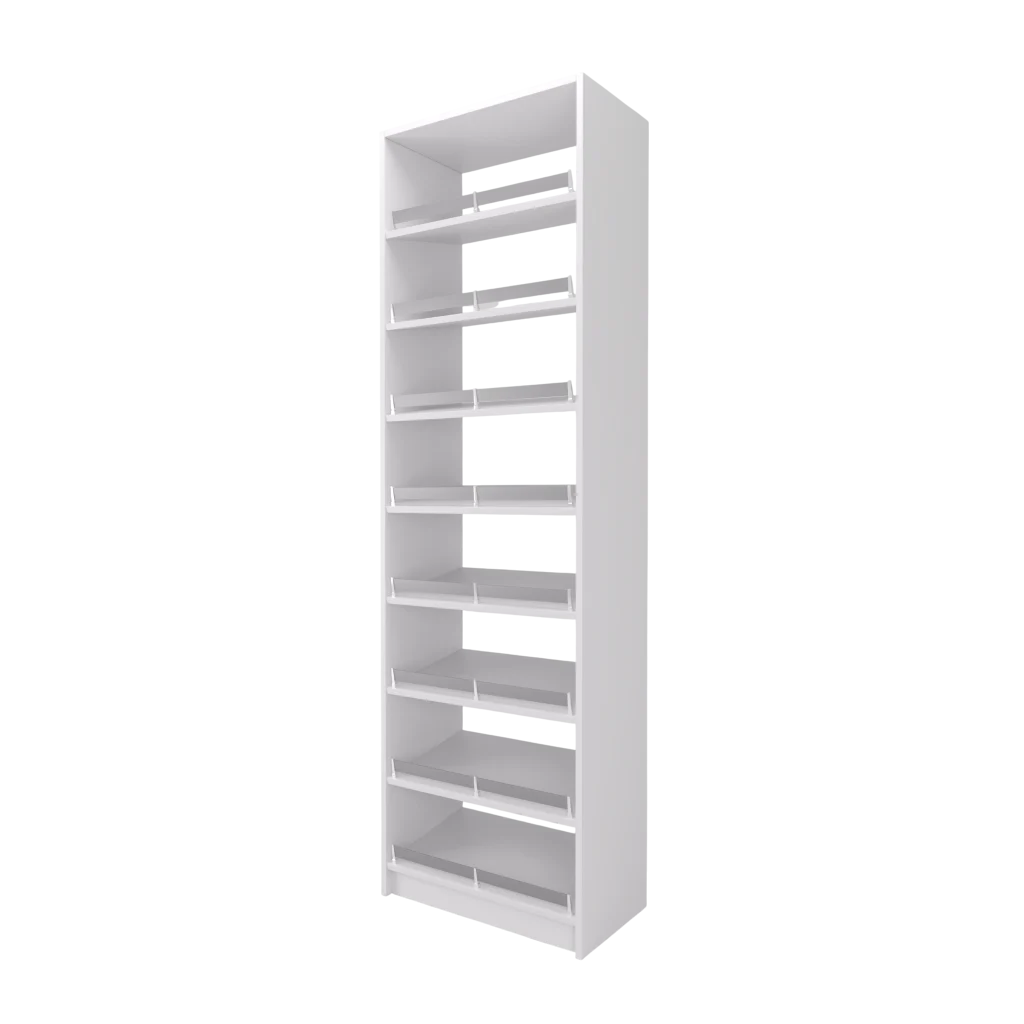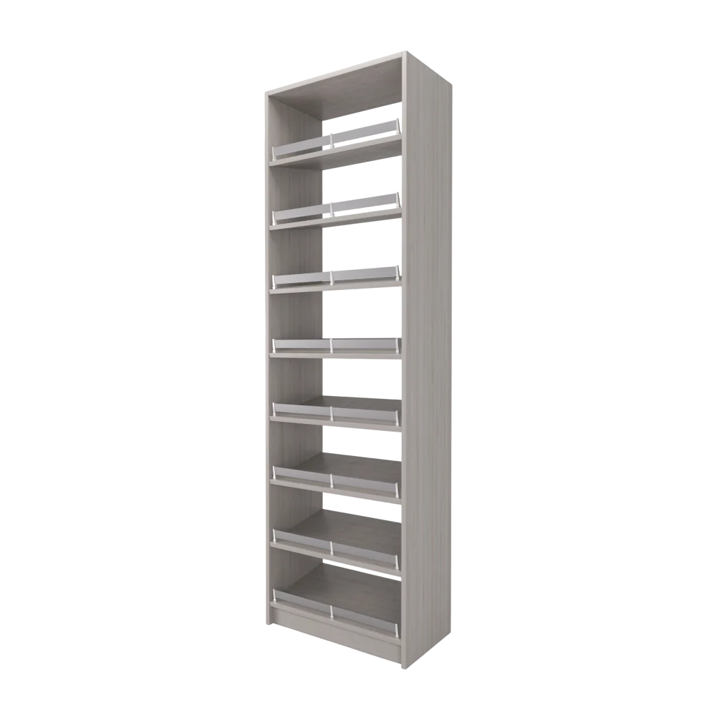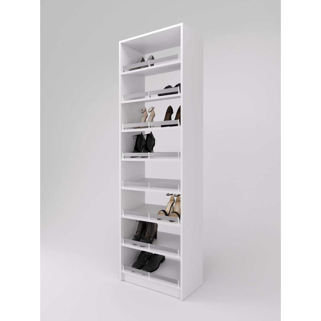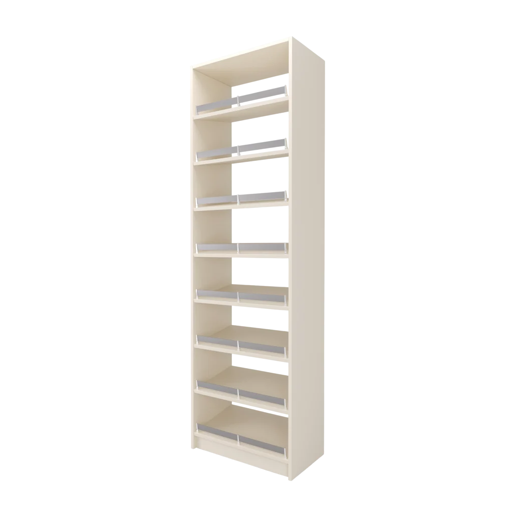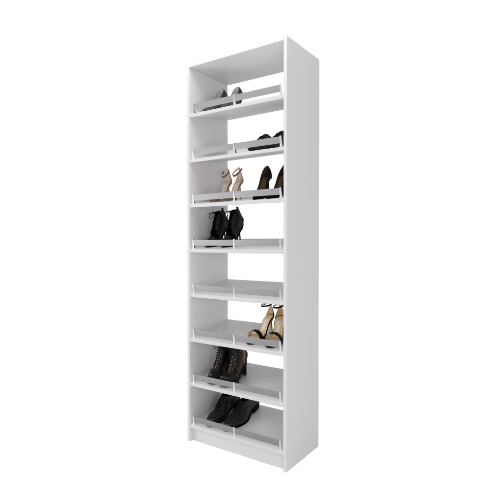 Create a functional, stylish closet with this floor-based slanted shoe shelving unit.