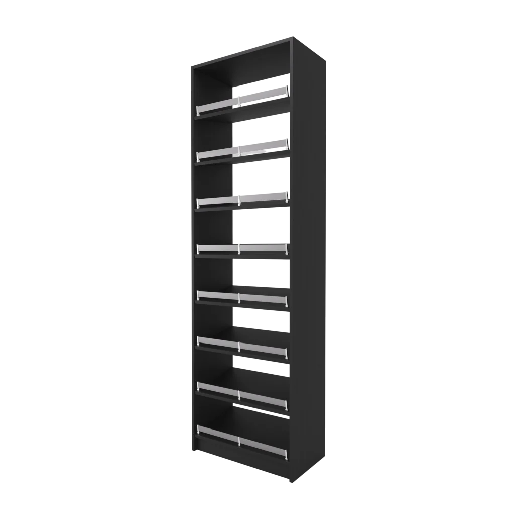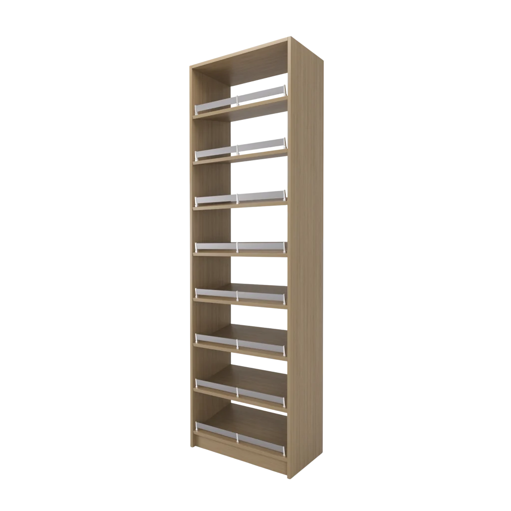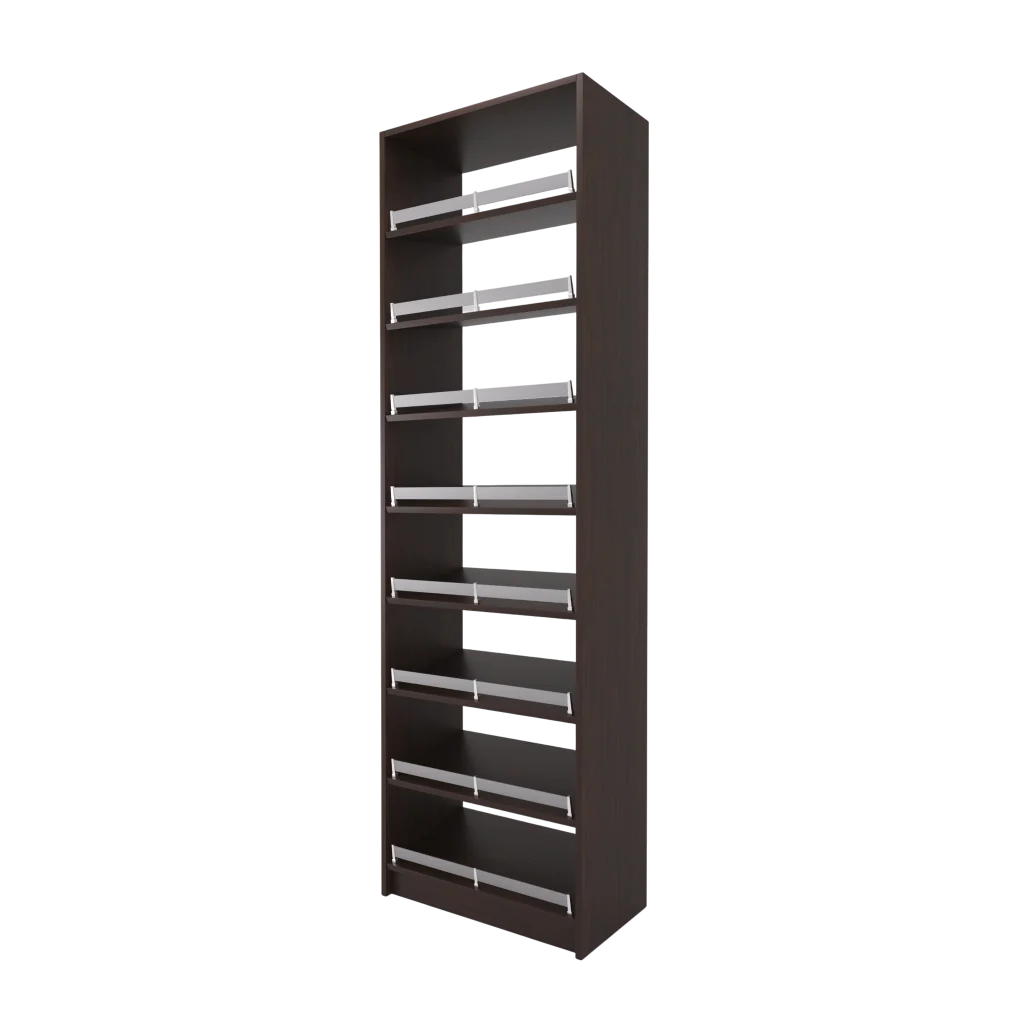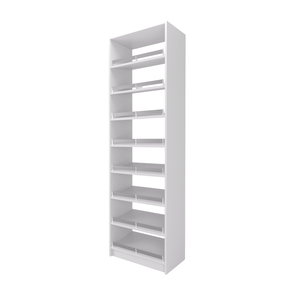 Create a functional, stylish closet with this floor-based slanted shoe shelving unit.