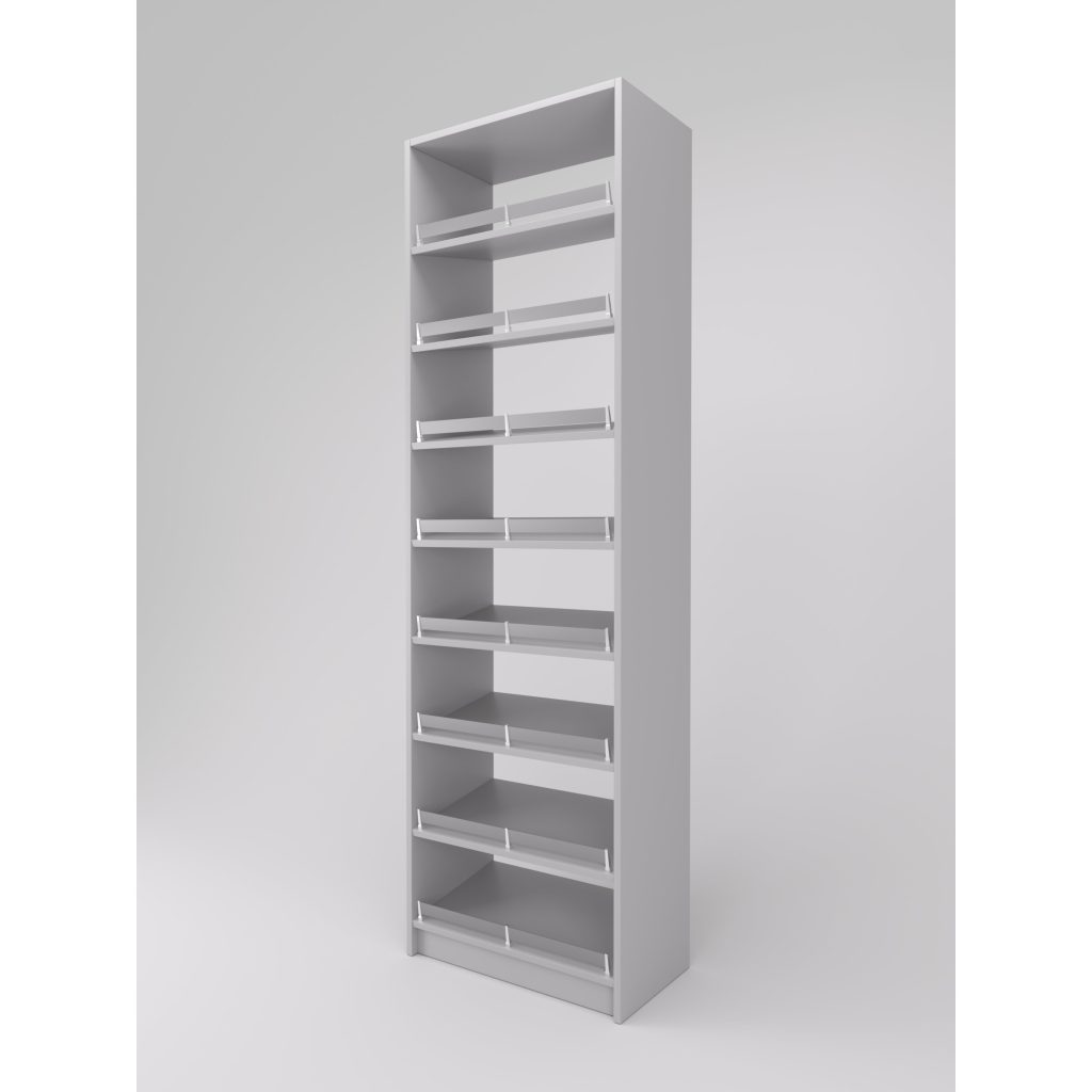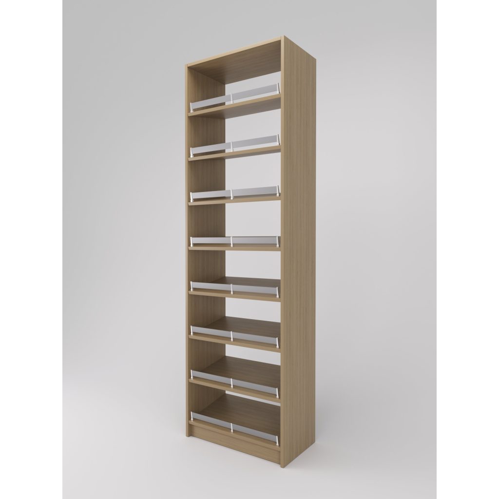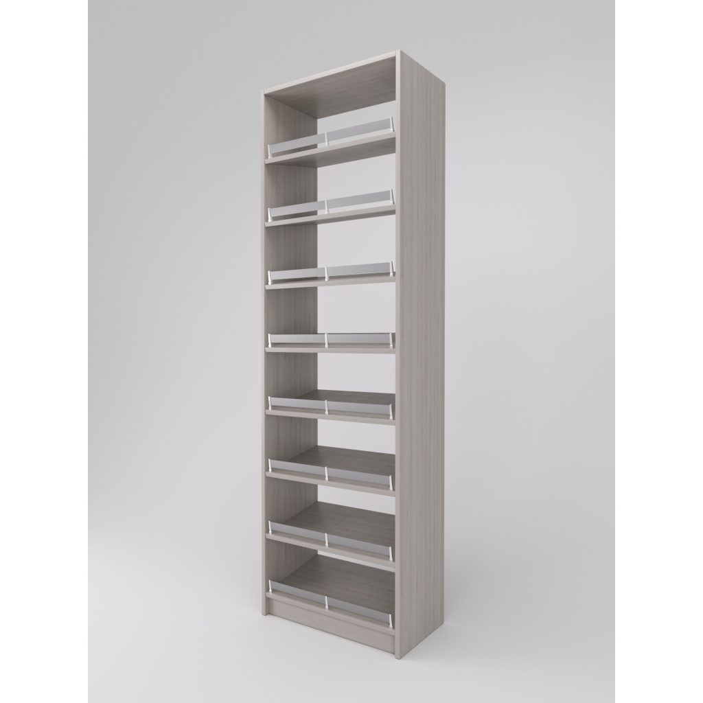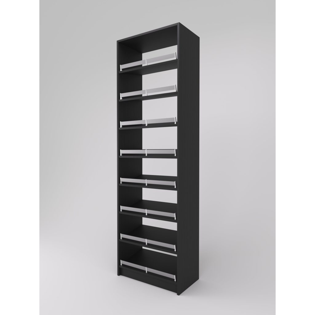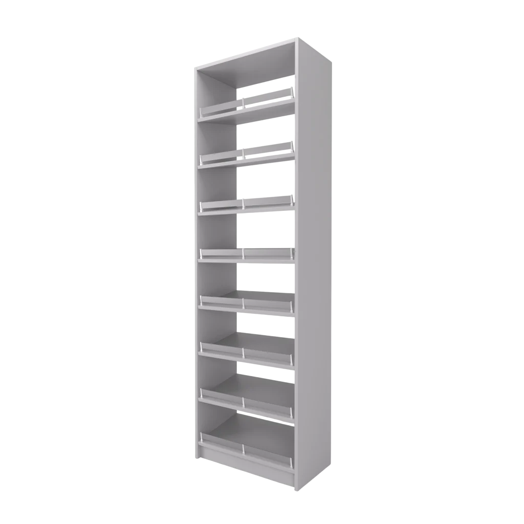 Create a functional, stylish closet with this floor-based slanted shoe shelving unit.