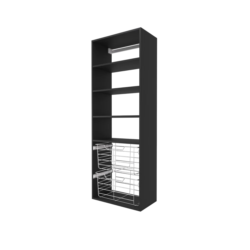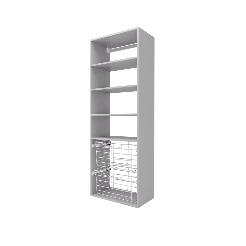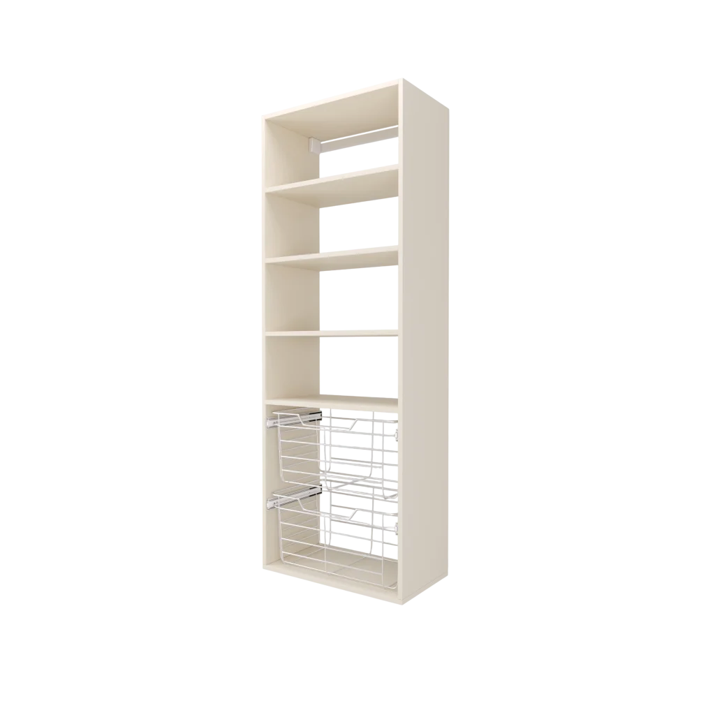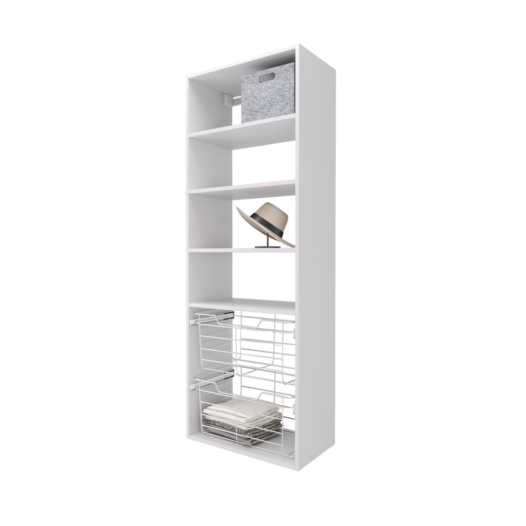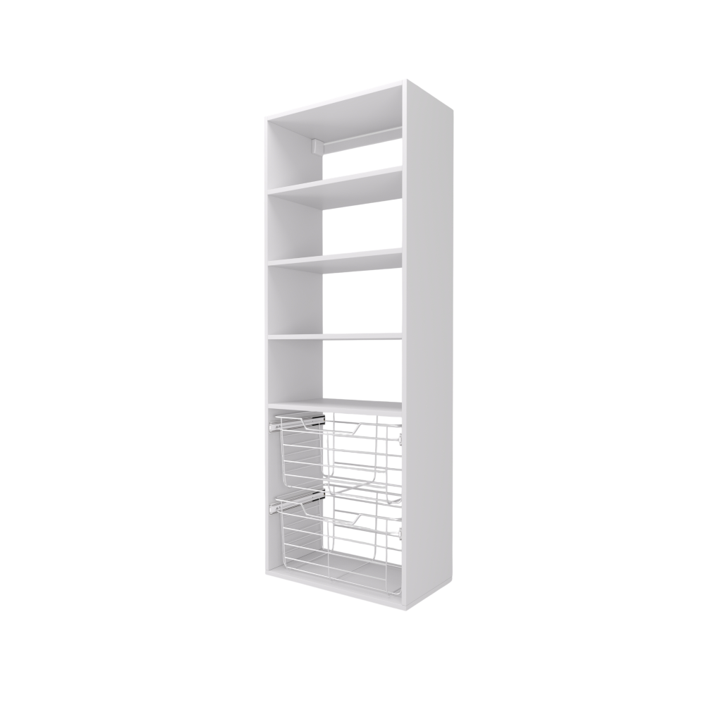 - Two 11″ high wire closet baskets with full extension slides