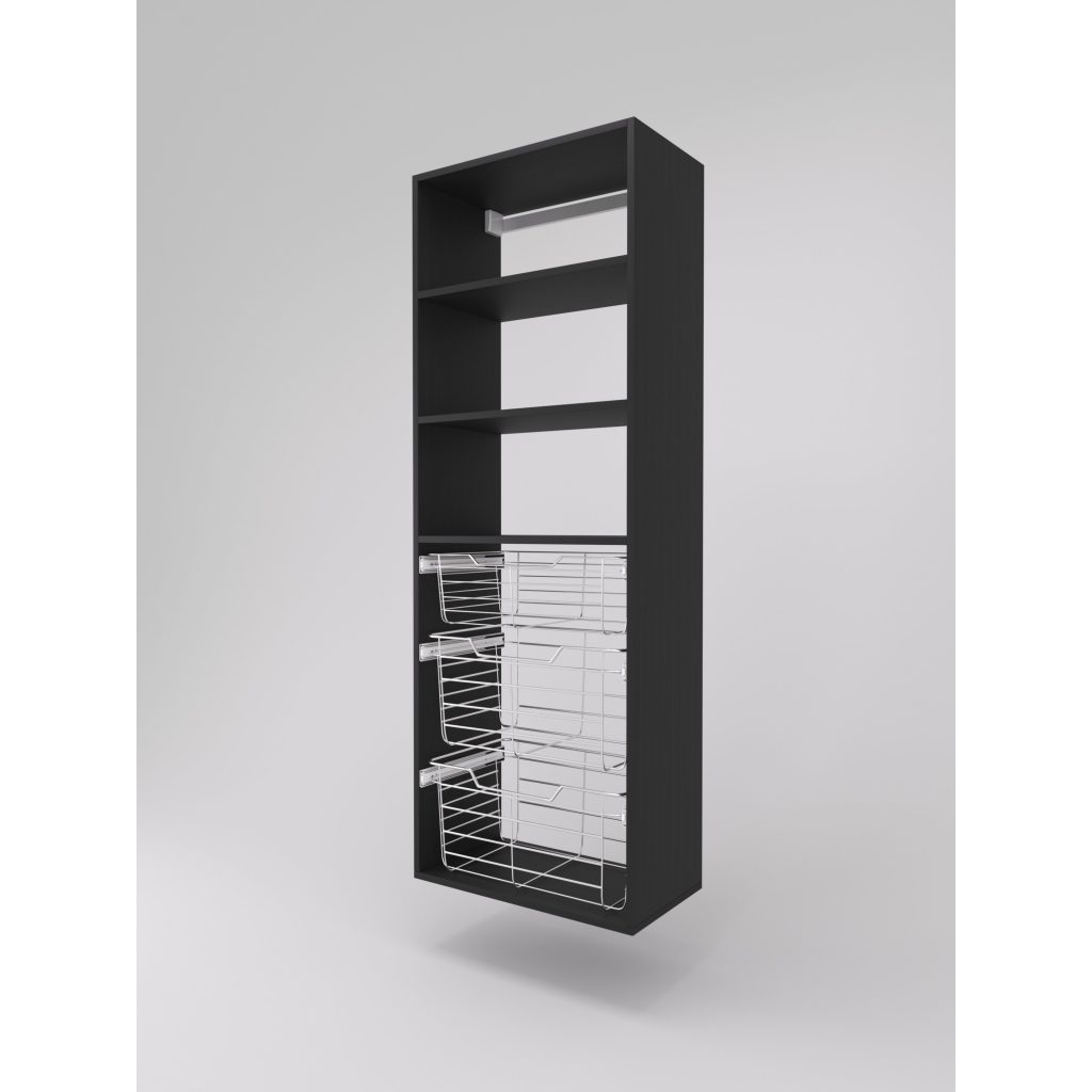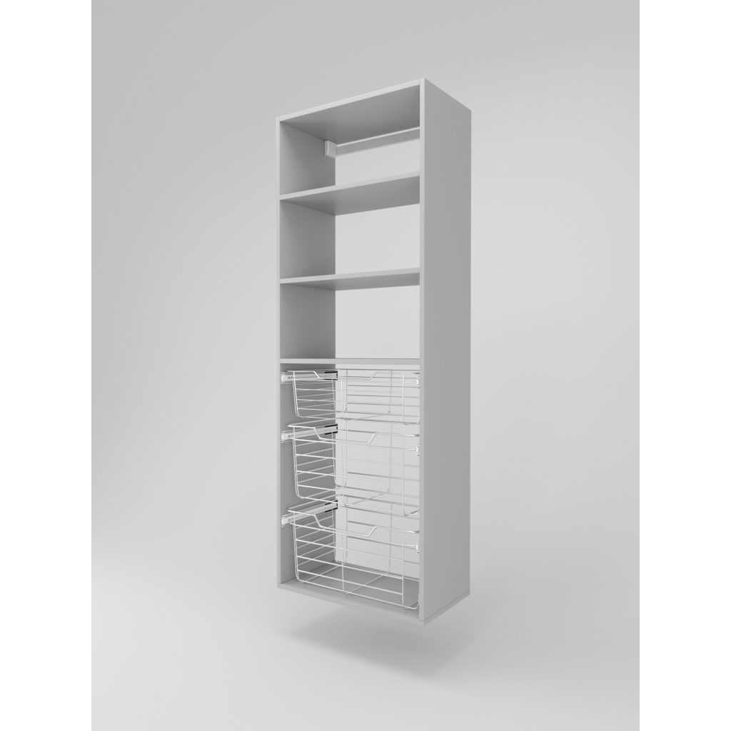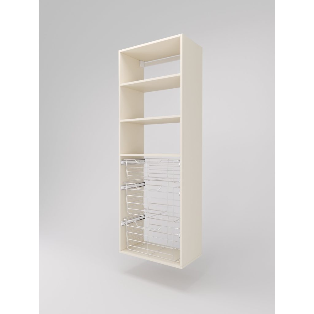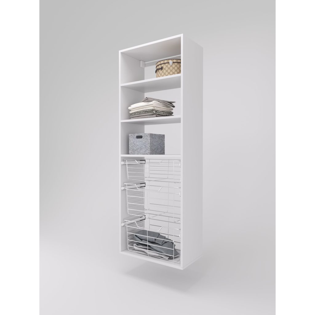 - One 6″ high closet basket and two 11″ high wire closet baskets with full extension slides