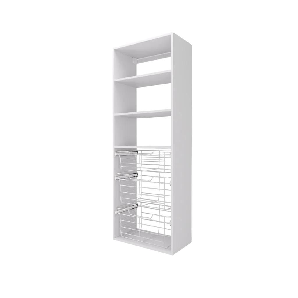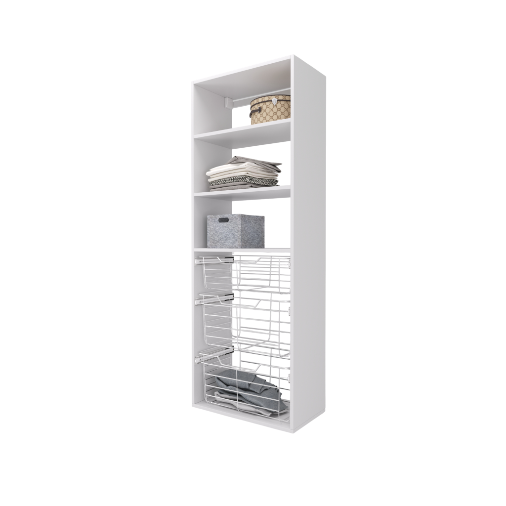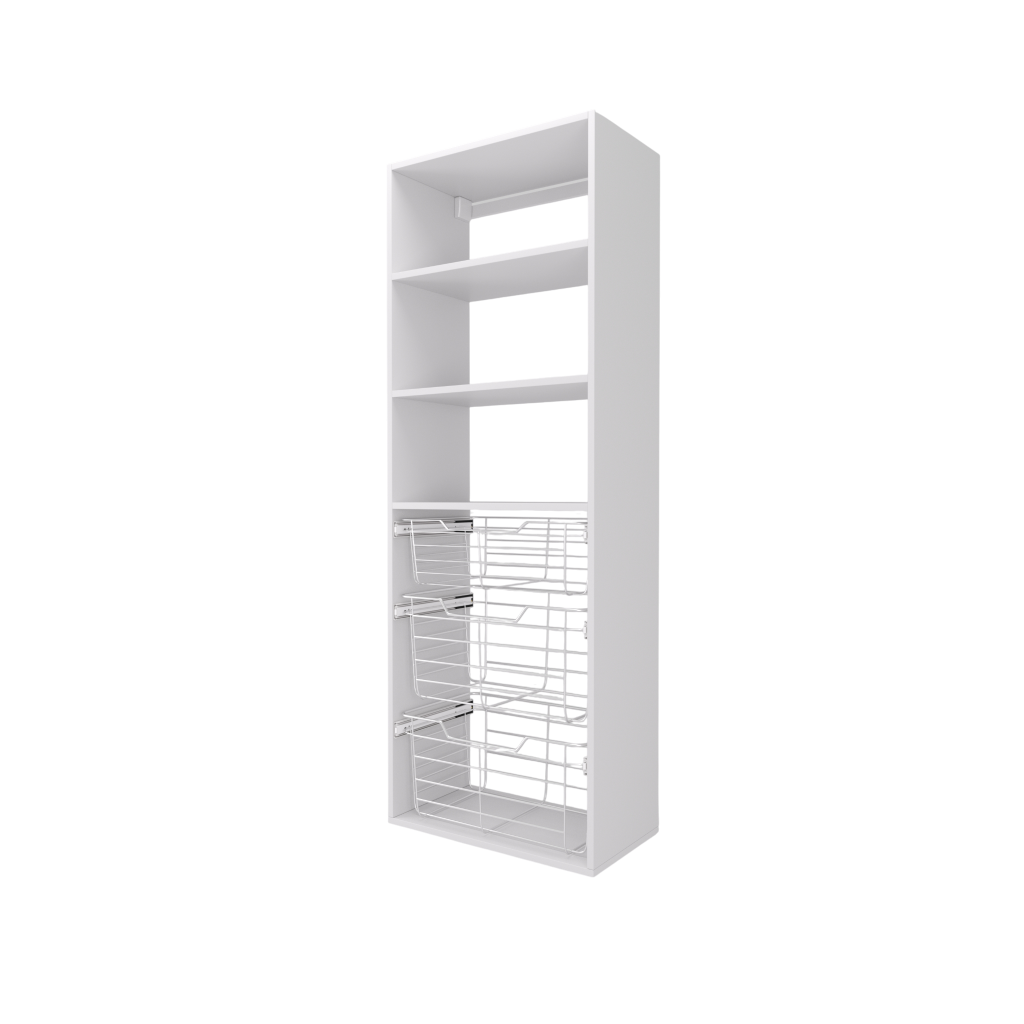 • One 6″ high closet basket and two 11″ high wire closet baskets with full extension slides
