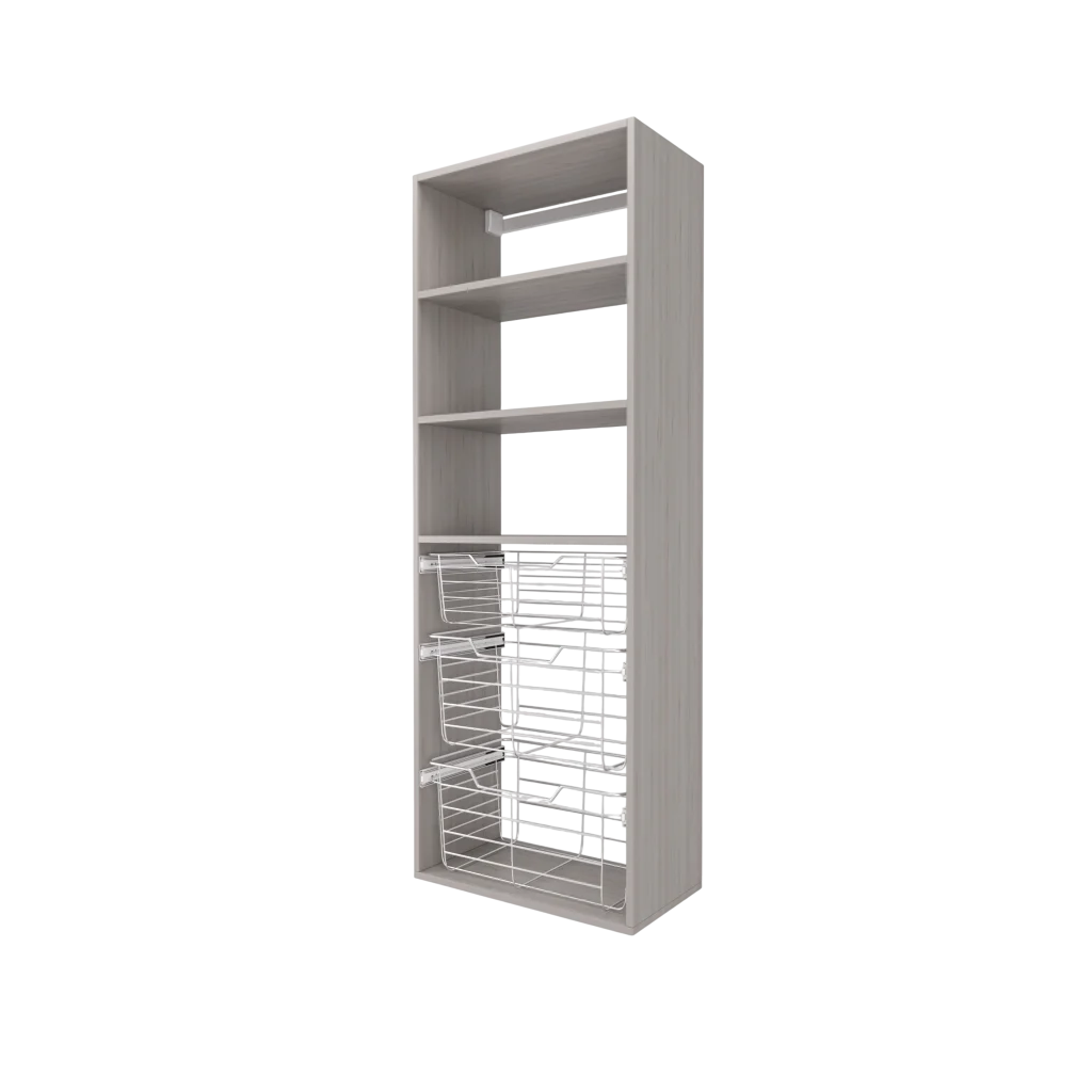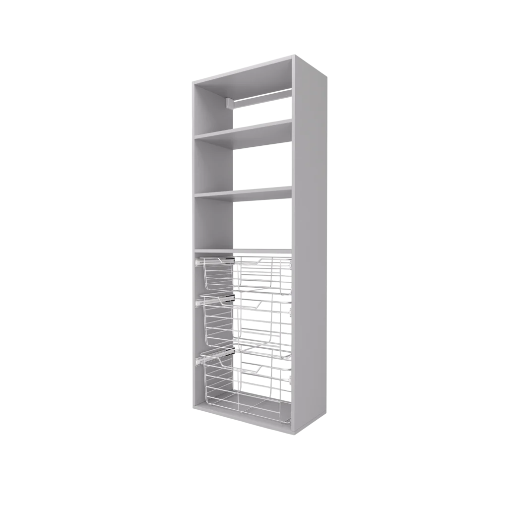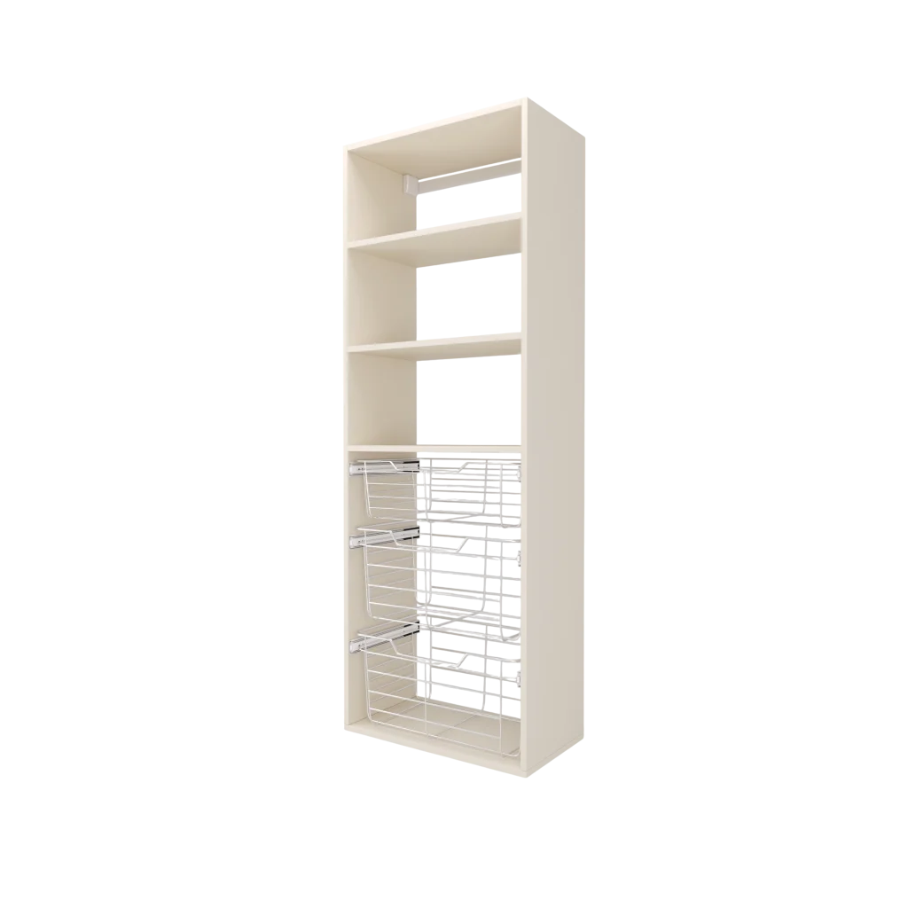 • One 6″ high closet basket and two 11″ high wire closet baskets with full extension slides